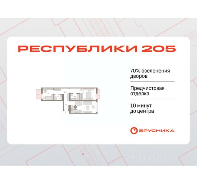 Квартира в счёт первоначального взноса по программе обмена. По всем вопросам обращайтесь в офис продаж, наши менеджеры вам все расскажут! Продается трехкомнатная квартира с предчистовой отделкой в ЖК "Республики 205" на 2 этаже. Общая площадь: 121.75 кв.м. Высота потолков 2.7 м. Купить квартиру можно с помощью программ покупки от застройщика Брусника: - ипотека по эксклюзивной ставке с помощью в получении положительного кредитного решения через сервис ипотечный брокер; - квартиры в рассрочку без процентов от застройщика Брусника; - обмен квартиры на новую. Получить одобрение ипотеки или рассрочку, а также осуществить обмен квартир можно онлайн. Дом монолитный, многоподъездный, переменной этажности, от 7 до 16 этажей. Квартира находится в 3-й секции высотой 16 этажей в корпусе 2. На этаже 7 квартир. В подъезде 2 грузовых лифта. Начало строительства - 1 квартал 2024 года. Окончание строительства - 1 квартал 2026 года. Оформление сделки по договору долевого участия. Район Проект расположен в границах улиц Пермякова, Энергетиков, Воровского и Республики. До центра города — 10 минут на машине. Рядом — автомобильная развязка на пересечении улиц Пермякова и Республики. В шаговой доступности есть школы, детские сады, поликлиники, крупный торговый центр, автовокзал и несколько скверов. Проект "Республики 205" — это проект комплексного развития территории, уникальный по своему наполнению. Переосмысляя бывшую территорию завода медицинского оборудования, мы создадим новое место силы — микрорайон, насыщенный деловой, развлекательной, рекреационной, игровой, образовательной и медицинской инфраструктурой. До каждого полезного сервиса здесь можно будет дойти за 15 минут. Локальными центрами "Республики 205" будут общественные пространства — скверы, парки, бульвары и площади. В границах нашего участка мы намерены разместить школу, рассчитанную на 1550 учеников, два детских сада на 300 мест и встроенный детский сад на 100 мест. В одном из цехов бывшего завода расположится креативный кластер "Кузница". Он станет площадкой для нескольких институций — галереи, лектория, книжного магазина-библиотеки, кинобара и точек креативного pop-up-ритейла. Пешеходные бульвары внутри района соединят между собой улицу ресторанов, детские и спортивные площадки, событийную площадь и летний кинотеатр. Идентификатор квартиры по базе застройщика: РСП-02-3-3. #zUFfOs