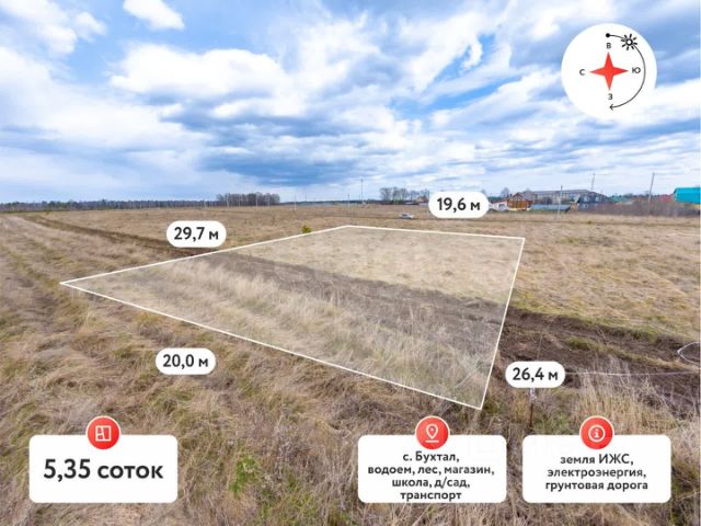 Арт. 97021812 Уважаемые покупатели, в продаже шикарный участок, расположенный всего в 48 км от Тюмени в с. Бухтал. Участок расположен вдоль дороги (грунтовое покрытие), на участке смешанный лес и молоденькие сосны, поле с ароматным разнотравьем, что идеально для дружеской коттеджной застройки. Газ и свет на границе с поселком. Участок примыкает к границе с. Бухтал с западной стороны.