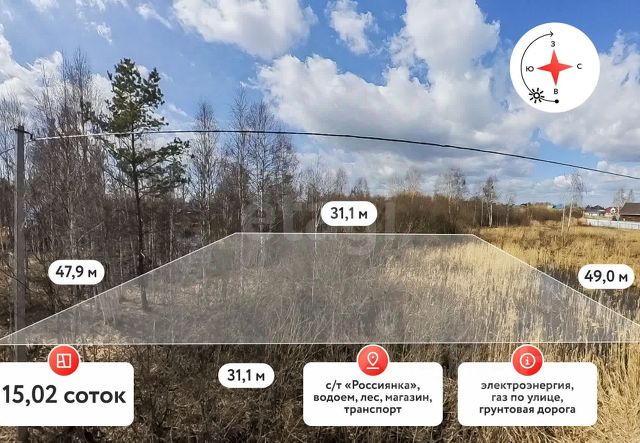 ВНИМАНИЕ! Отличный участок 15 соток в СТ "Россиянка"! Подойдет для строительства жилого дома, дома выходного дня, дачи. Выполнено межевание. Категория земель: земли населенных пунктов. Разрешенное использование: ведение садоводства и огородничества. *До участка асфальтированная дорога, дороги зимой чистят *Газ - проходит по улице *Электричество - столбы около участка *Автобусная остановка - 500 м *Круглогодичный общественный транспорт (не менее 7-8 рейсов до центра и обратно) Расположен в востребованной локации. Рядом р-н Липовый остров, п. Березняки. Городская прописка. В районе активно ведется частное строительство для постоянного места жительства. Звоните, отвечу на все ваши вопросы и проконсультирую по вопросам загородной недвижимости! МЫ ГАРАНТИРУЕМ ФИНАНСОВУЮ БЕЗОПАСНОСТЬ ДЛЯ НАШИХ КЛИЕНТОВ. Код пользователя: 110294 Номер в базе: 12307822