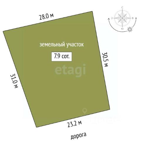 Участок правильной формы, ровный, без перепадов по высоте, не требует отсыпки. Размеры участка 30 метров по фасаду на 40 метров в глубину.