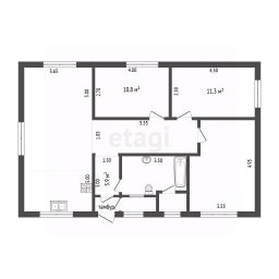 В доме очень удобная и многофункциональная планировка: большая кухня-гостиная для отдыха всей семьей или встречи с друзьями, две спальные комнаты правильной прямоугольной формы, санузел и котельная.