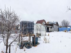 По всему участку и строениям(дом, баня, туалет) разведен безнапорный водопровод, питаемый из еврокуба, укрытого на пригорке в глубине участка,что невероятно удобно (никаких умывальников!)