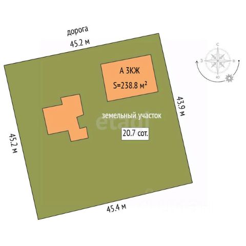 Плодово-ягодные деревья, ухоженные грядки, теплица, предусмотрена удобная система полива