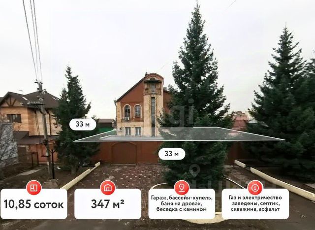 Участок ухоженный, растет большое количество различных кустарников с ягодами ( крыжовни, малина), яблони,кедр, дерево тытовник, и многое другое. Дом огорожен добротным забором из кирпича высотой три метра. На участке газон, автополив, беседка,сауна, бассейн, хозяйственный блок. Теплый гараж для автомобиля. На территории находится отдельно стоящий комплекс 120 кв.м. в котором разместился басейн ( 7.7м на 2.6м,глубиной 1.7м.), две гостевые комнаты, душ, санузел, сауна. Респектабельные соседи. Вы можете смело приглашать гостей и родственников!