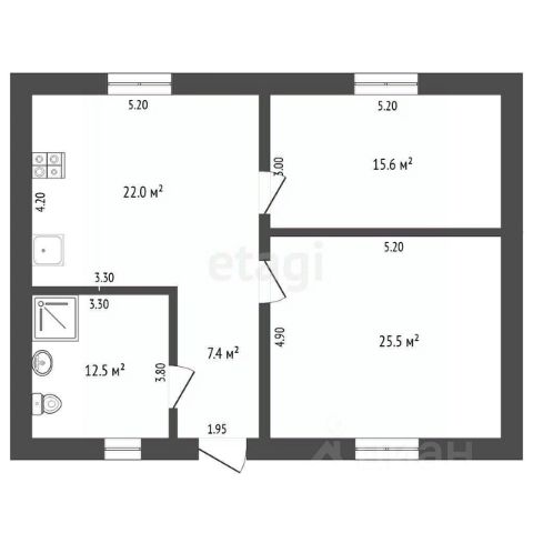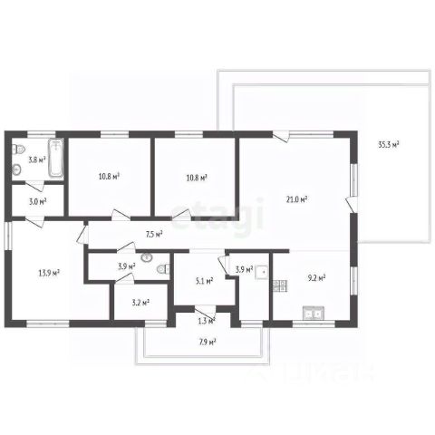 3 спальни + просторная кухня гостиная + санузел + бытовая комната, которую можно переделать во 2 с/у