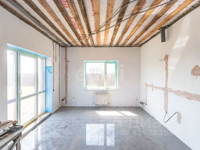Основной дом выполнен из газоблоков с облицовкой силикатным кирпичом и утеплителем между слоями, что гарантирует энергоэффективность. Фундамент ленточный, высотой 70 см. Внутри — предчистовая отделка с теплыми полами по всему дому, подведенным электричеством и оборудованным санузлом. Планировка включает мастер-спальню с собственной ванной, детскую комнату, просторную кухню-гостиную. Отопление газовое, водоснабжение — из скважины глубиной 40 метров, канализация автономная с переливным баком, не требующим частой откачки.