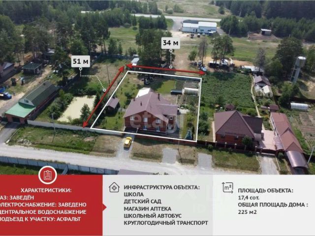 Участок: ИЖС-сухой, ровный. По периметру установлен металлический забор с автоматическими откатными воротами, есть дополнительные ворота торцевые для хозяйственных нужд.
