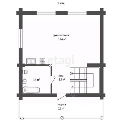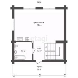 Первый этаж включает:кухня-столовая, гостиная с настоящим дровяным камином , комната и совмещенный санузел!