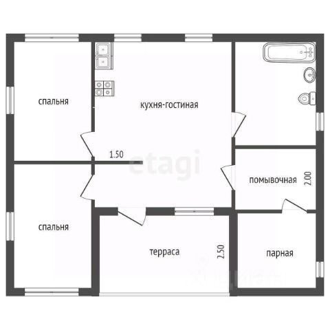 Электричество: Электросчётчик, распределительный щиток, электропроводка по всему дому. Заведен кабель под интернет. Планировочным решением предусмотрена кухня-гостинная 22 м кв., две изолированные комнаты 16 и 26 м кв., большой санузел 8 м кв.