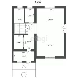 На втором - 2 спальни и свободная планировка под ваш дизайн-проект. Окна, двери есть, крыша утеплена, теплый пол. За домом и перед ним есть места для небольшого сада деревьев с беседкой и мангальной площадкой. Все коммуникации заведены в дом: газ, электричество, канализация (септик), центральное водоснабжение.
