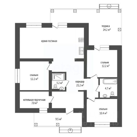 Продается готовый дом площадью 115 квадратных метров для постоянного проживания большой семьи или тех, кто ценит личное пространство — в доме три полностью автономные комнаты, каждая из которых изолирована от других, что идеально подходит для родителей с детьми или для тех, кто работает из дома и нуждается в тихом кабинете. Сердце дома — просторная кухня-гостиная с прямым выходом на собственную террасу, где летом можно завтракать на свежем воздухе, устраивать вечерние чаепития или принимать гостей, объединяя внутреннее пространство с улицей.