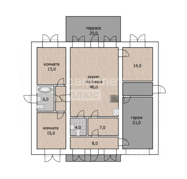 Два санузла, техкомната, удобное зонирование