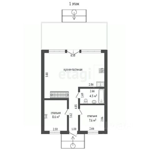 Жилой дом, сделан качественный ремонт, 2 изолированных комнаты, кухня гостиная, гараж, баня, центральный водопровод и центральное отопление