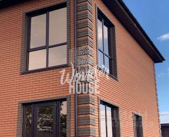Основной дом построен по индивидуальному разработанному проекту , фундамент : на монолитной плите толщина 1м, и 16 свай, диаметр 300мм, стены : керамзитоблок 500*300мм + утепление 50мм пенополистирол, кирпич 120мм одинарный керамический (Брылино) цвета абрикос + шоколад. Крыша : четырехскатная , водосточная система фирмы Docke премиум , по кругу 2 ряда снегозадержателей.