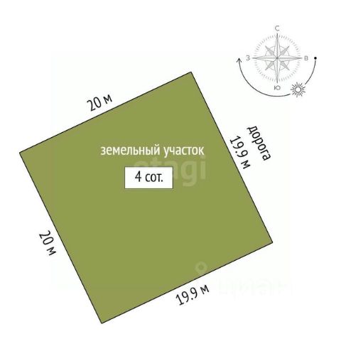 Участок: 19.59 соток, угловой, в старой (исторически сложившейся) части села.