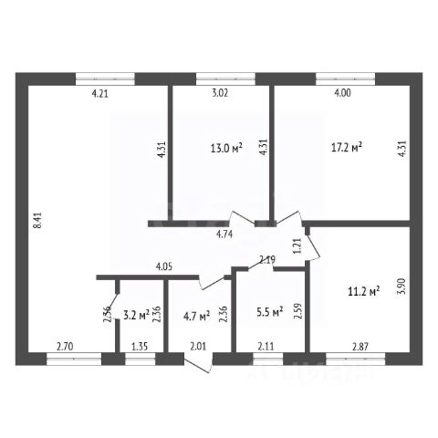 Просторная кухня-гостиная более 30 кв.м, 3 изолированные комнаты (13 кв.м, 17,2 кв.м, 11,2 кв.м), санузел 5,5 кв.м. Дом имеет стильный и современный дизайн, который гармонично вписывается в окружающий пейзаж.