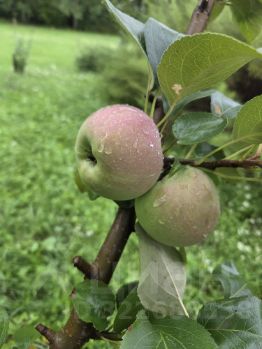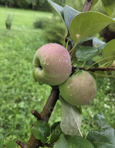 Участок ухожен, засеян газонной травой. Много плодовых деревьев: яблони разных сортов, груши, слива, вишни,смородина, малина и другие декоративные кустарники.