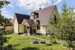 Одноэтажный дом построен по канадской технологии, материал - дерево, утеплитель, застеклённая терраса - 12 кв. м., кладовая - 3,2 кв.м., отопление - электрические батареи, камин.