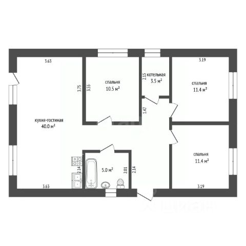 ПОДХОДИТ ПОД СЕМЕЙНУЮ ИПОТЕКУ 6% Можно рассмотреть покупку БЕЗ ПЕРВОНАЧАЛЬНОГО ВЗНОСА!!! Продается современный загородный дом общей площадью 89 кв.м. (внутренние размеры 8,5м*10,5м, наружные размеры 9,1м*11,1м) , формат 3+. Классическая в настоящее время для индивидуальных домов планировка: просторная кухня-гостиная и три спальни. Минимум коридоров. Санузел, прихожая и котельная. Фундамент дома - утепленная ж/б плита толщиной 350 мм. Несущие стены выполнены из керамзитоблока с утеплением 100 мм. и облицованы кирпичом. Кровля - металлочерепица, утепление крыши 200 мм. эковата. Внутри выполнена улучшенная отделка, включающая разводку электричества, штукатурку стен, отделку откосов и подоконников, стяжку пола. Всё подготовлено для чистового ремонта, можно уже клеить обои и класть напольное покрытие. В доме установлен электрокотел, отопление - водяной теплый пол по всей площади дома. Для водоснабжения сделана скважина, вода заведена в дом. Канализация - септик. Установлены теплые окна с тройным стеклопакетом и входная дверь с терморазрывом. Всё сделано очень качественно и надёжно, убедитесь в этом лично - записывайтесь на просмотр, организую в удобно для Вас время! МЫ ГАРАНТИРУЕМ ФИНАНСОВУЮ БЕЗОПАСНОСТЬ ДЛЯ НАШИХ КЛИЕНТОВ. Код пользователя: 191781 Номер в базе: 3780713
