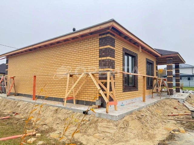- Материал стен: керамзитоблок - 300 мм; пенополистерол - 100 мм; облицовка - керамический кирпич