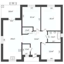 Участок правильной формы, дом находится пропорционально участку, просторная территория.