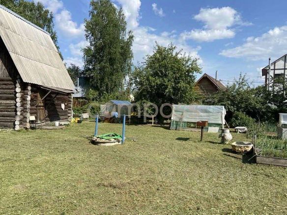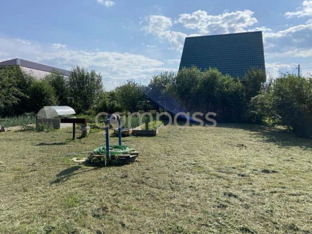 Есть теплица, небольшой огород и газон.