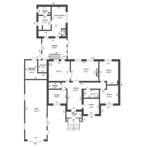 Площадь дома составляет 249,4 кв.м, а участок имеет площадь 25 соток.