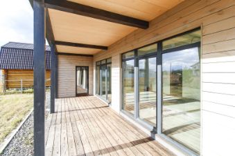 В основных комнатах панорамное остекление.Окна немецкого производства Salamander, двери из цельного массива ясеня, весь керамогранит итальянской фирмы FMG серия Travertino.
