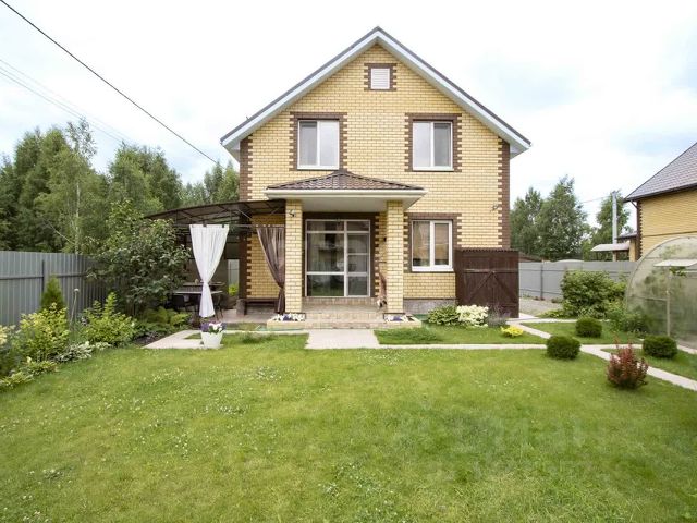 Земельный участок огорожен металлическим забором и разделен на две зоны. Зона отдыха: газон, маленький домик для детей, игровая зона, горка, будка для собаки, перед домом мангальная зона. Вторая зона, рабочая: Теплица, курятник утепленный, готов к эксплуатации, грядки и хозпостройка на 50 кв.м. Насаждения: смородина, малина, вишня, яблони, барбарис, вокруг дома сосенки.