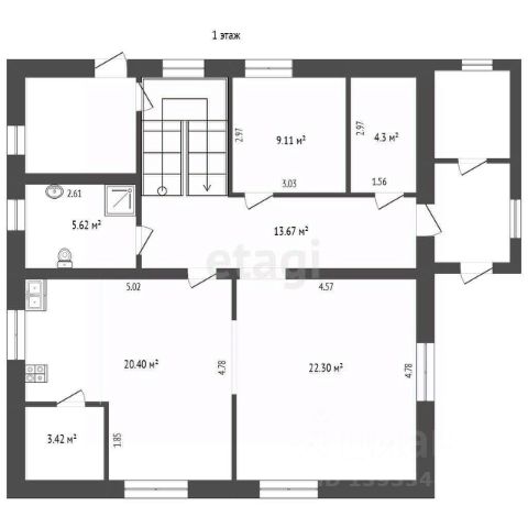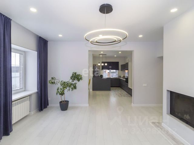 На первом этаже расположены: кухня, гостиная с действующем камином , две комнаты, гардеробная и сан.узел . На второй этаж ведет деревянная лестница с кованными перилами . Там расположены 4 изолированные комнаты и сан.узел.