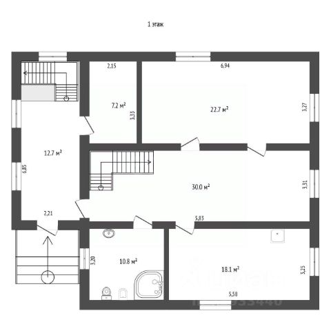 Площадь — 27 м2, высота — 2,47 м (6,23 4,34 м),