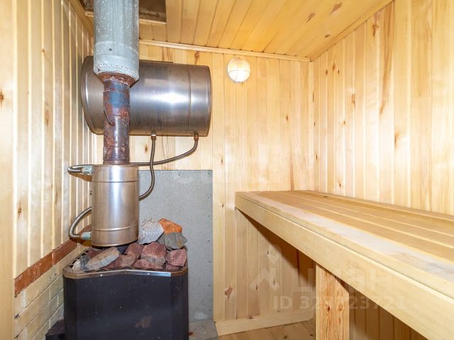 Банный комплекс 114,8 кв.м. (зарегистрирован 2018г.) включает в себя комнату отдыха, душевую с купелью, парилку, летнюю веранду с дистанционным управлением рольставней, зону барбекю (мангал, казан), кухню, детский спортивный уголок, дровяник, летний оборудованный туалет, две хозпостройки с возможностью разведения домашней птицы или кроликов. Заведен водопровод, установлен электрический водонагреватель, отопление от газового конвектора и системы электрического теплого пола во всех помещениях.