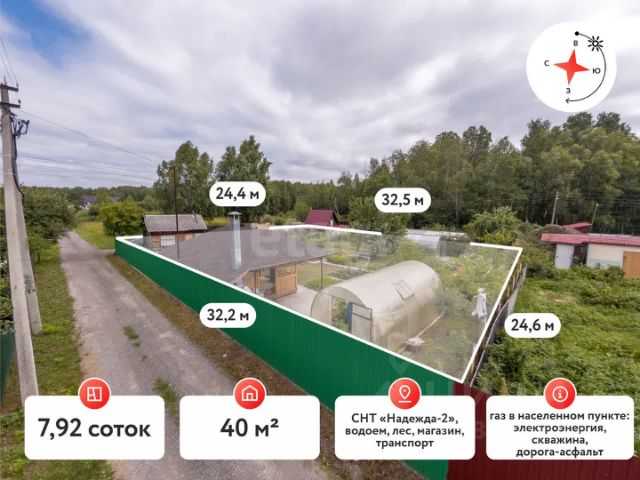 Продаётся прекрасный участок идеальной формы площадью 8 соток! Участок аккуратно огорожен качественным профнастилом, оборудованы удобные въездные ворота. Уже имеется просторная веранда для комфортного отдыха, обустроенный колодец с чистой водой, туалет, вместительная кладовая, уютный летний домик, добротный сарай и две современные теплицы. Прекрасные плодовые насаждения: зрелые яблони, ароматные вишни, живописная берёза, богатое ягодное разнообразие — малина, красная и черная смородина, вкуснейшая клубника, овощи (огурцы, помидоры). Всё готово к вашему урожаю! Удобства: центральная дорога СНТ Надежда-2 покрыта асфальтом, подъезд к участку осуществляется по качественной дороге из щебня. Дороги регулярно очищаются зимой благодаря постоянному проживанию местных жителей. Поблизости расположена приятная зона отдыха — база отдыха "Верхний Бор". Идеальное место для прогулок и семейного досуга. Мы готовы организовать показ участка в удобное вам время. Возможен торг. Сделайте первый шаг навстречу своей мечте о загородной жизни и собственном уголке природы! я. Торг уместен. МЫ ГАРАНТИРУЕМ ФИНАНСОВУЮ БЕЗОПАСНОСТЬ ДЛЯ НАШИХ КЛИЕНТОВ. Код пользователя: 10737 Номер в базе: 7782030