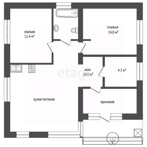3 спальни + просторная кухня гостиная + санузел + бытовая комната, которую можно переделать во 2 с/у