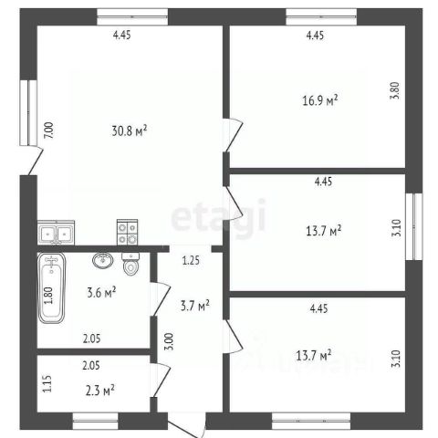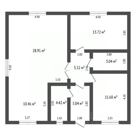Высота цокольного этажа 2,95 м, в 2-х самых больших помещениях устроены теплые полы, сделана водоподготовка для душевой зоны.