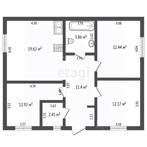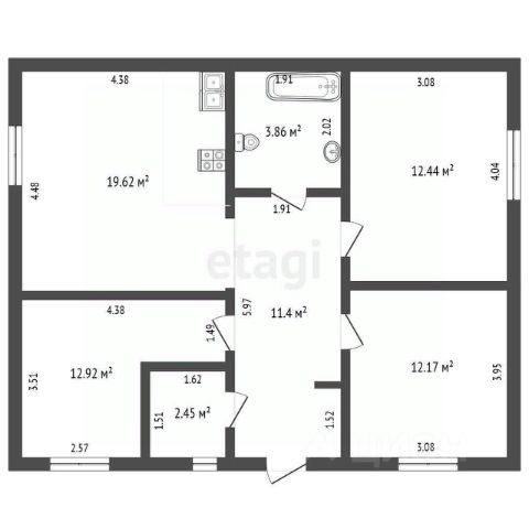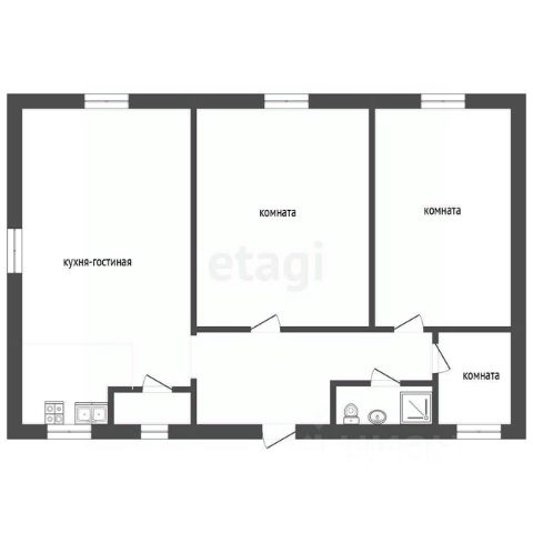 Планирoвка: коридор 11 кв.м, большая кухня-гостинная 22,5 кв.м с выходом на террасу, caнузел, оборудованная кoтeльная, 2 cпaльни почти по 14 кв.м.