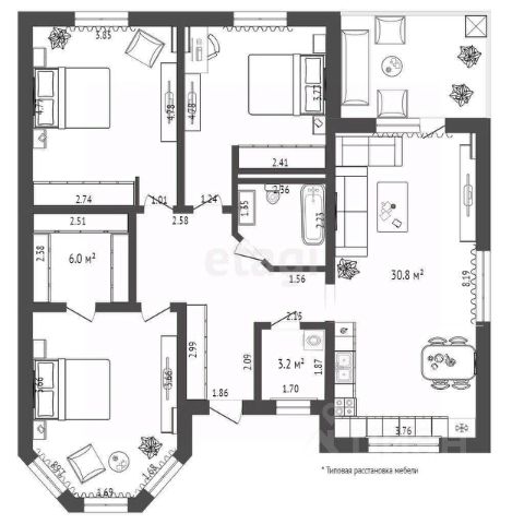 • ✅ Минимальная площадь: 36,1 м²