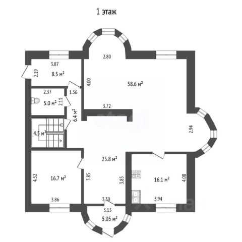 На первом этаже большая комната отдыха, баня + помывочная, тамбур и санузел. Баня очень жаркая с дорогой печью (вообще предназначена для обогрева парилки 18 м2, обшита липой. На втором комнаты отдыха + большой балкон. банная труба проходит не через второй этаж, а выходит из парилки за дом, благодаря чему на втором этаже не крадется полезная площадь и исключаются риски обжечься.