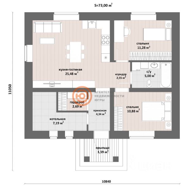 Арт. 128350757 Уютный дом 73 м2. Переступив порог, вы попадаете в прихожую 4,34 кв.м, где сразу слева расположена удобная гардеробная 2,69 кв.м идеальное место для хранения верхней одежды и обуви. Рядом с ней отдельный вход в котельную 7,19 кв.м, что сделает обслуживание систем максимально удобным. Пройдя прямо по левой стороне, вы окажетесь в сердце дома кухне-гостиной 25,48 кв.м. Большие окна подарят обилие солнечного света и позволят экспериментировать с декором при обустройстве. Спальни расположены так, чтобы гарантировать приватность и тишину. Первая спальня встречает вас справа, сразу за гостиной, а вторая в противоположной части дома, создавая ощущение уединенности. Между ними удобно разместился совмещенный санузел, эргономично объединяющий все необходимое для повседневных нужд. Ключевые особенности: 2 изолированные спальни — баланс между общением и личным пространством Практичная гардеробная 2,69 кв.м у входа Просторная кухня-гостиная 25,48 кв.м с естественным светом Котельная 7,19 кв.м рядом со входом в дом. Планировка: 2+ Материал несущих стен: Керамзитоблок Материал кровли: Гибкая черепица Тип кровли: Вальмовая Облицовка стен: Облицовочный кирпич Подходит под все льготные программы! Звоните, с радостью расскажем все детали!