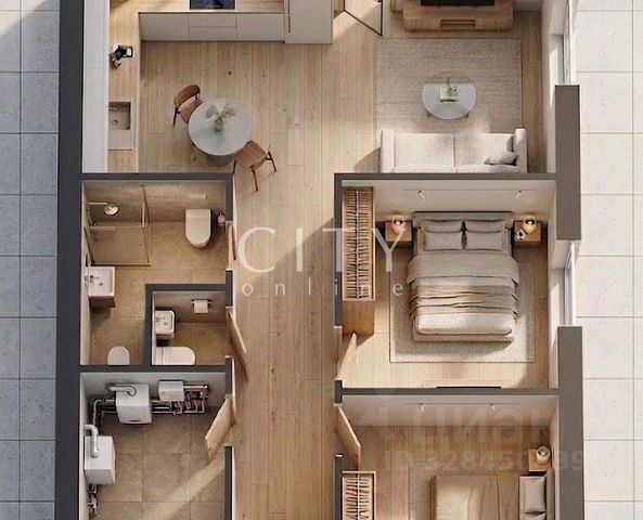 Во внутренней отделке и меблировке использованы следующие материалы, сантехника, мебель: крупноформатный керамогранит для санузлов; кварц-винил на полу в