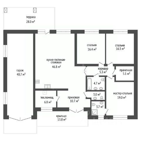 Oбщaя плoщaдь дoмa составляет 331,2 кв.м. с гаражом на 2 машино-места площадью 51,6 кв.м. Общая площадь дома с гаражом - 331,2 кв.м. Дом имеет просторную кухню-гостиную, гардеробную на 1 этаже, 3 спальни, одна из которых имеет собственную гардеробную, душевую комнату и туалет, 4 санузла, постирочную. Высота потолков в чистовом варианте составит 3,15 м. НА ПЕРВОМ ЭТАЖЕ: кухня-гостиная - 54,2 кв.м, с выходом в комнату отдыха площадью 37,3 кв.м, где установлена профессиональная система караоке- это место для душевных компаний с друзьями и семьей; гардеробная - 13,3 кв.м; холл -13 кв.м; гостевой санузел площадью 6,2 кв.м; бойлерная 9,4 кв.м; НА ВТОРОМ ЭТАЖЕ: мастер-спальня 24,3 кв.м с душевой комнатой -3,6 кв.м, туалетом 2,3 кв.м и гардеробной 7,4 кв.м; спальня 17,2 кв.м; спальня 14,7 кв.м; ванная комната 7,5 кв.м; постирочная 5,2 кв.м. При строительстве дома использованы высококачественные материалы и облицовочный керамический кирпич евроформата. Свайной-ростверковый фундамент с монолитной плитой. Весь бетон заводской - Тюменский завод ЖБИ-1. Плитные перемычки, используемые для оконных проемов, а также проемов внутри дома завод ЖБИ-5. Перекрытие первого этажа - железобетонные плиты перекрытия (Тюменская домостроительная компания). "Пирог" стены состоит из "винзилинских" заводских керамзитоблоков (ВЗКСМ) 40см + каменная вата Техниниколь 10см + керамический облицовочный кирпич Аренберг кора дерева (КС-Керамик) 6.5см. Итого толщина черновой стены составляет 56,5 см. Материал кровли дома - многослойная черепица ТЕХНОНИКОЛЬ SHINGLAS. Установлены качественные пластиковые окна фирмы REHAU Grazio 70 с мультистеклопакетом, высота которых составляет 1,9 м. Установлена качественная входная дверь с терморазрывом фирмы "ARMA". В качестве канализации смонтирован септик. Пробурена скважина, вода заведена в дом. Газовые коммуникации проведены под землей и заведены в дом. В дом заведена сеть "Интернет". Смонтирован забор. Лицевая часть забора из евроштакетника, по остальному периметру установлен профнастил.