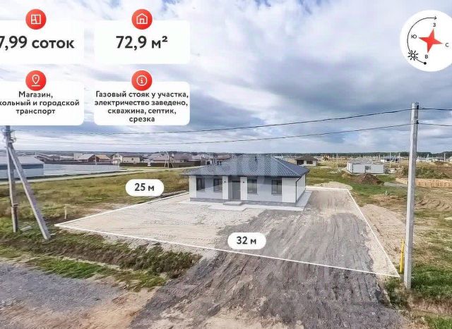 Покупай сейчас - плати потом! На данный объект доступна рассрочка на выгодных условиях ПОДХОДИТ ПОД СЕМЕЙНУЮ ИПОТЕКУ! Продажа теплого и функционального дома площадью 80 кв.м + 25 кв.м терраса , кухня 27,5 + 2 спальни по 11 кв.м. ,котельная 2,7 кв.м., санузел 6,5 кв.м., коридор просторный 11,7 кв.м., - скважина глубиной 44 м,септик 4м. из бетонных колец, - огорожен забором из профнастила, участок мерой 5,2 сотки. - Отделка улучшенная (предчистовая, стены отштукатурены,), выполнены работы по разводке электричества по дому, отопление от электрического котла и конвекторов. Данный жилой дом проходит по гос программам (семейной ипотеке под 6% и сельской под 3% ипотеке). Дом каркасного исполнения из СИП - панелей, утеплен пенопластом 200 мм, обшит ОСП. Можно провести сделку по договору подряда, помощь в получением ипотеки. МЫ ГАРАНТИРУЕМ ФИНАНСОВУЮ БЕЗОПАСНОСТЬ ДЛЯ НАШИХ КЛИЕНТОВ. Код пользователя: 156494 Номер в базе: 1802854