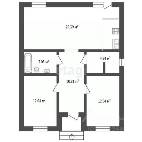 Дом площадью 60.6 кв.м с двумя комнатами и просторной 20,4м2 кухней-гостиной, где кухонная зона выделена, что обеспечивает удобство при готовке и комфортное размещение гостей.