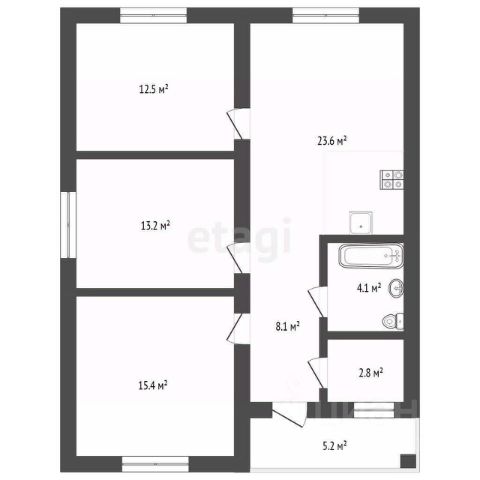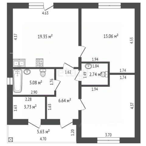 Дом площадью 45,1кв.м., 2 жилых комнаты по 16 кв.м., кухня 14 кв.м., прихожая 15 кв.м., санузел. в очень хорошем состоянии. Выполнен косметический ремонт, установлены пластиковые окна. Отопление газовое, дополнительно есть печь. Есть все коммуникации, заведены в дом и в баню: электричество, газ, скважина, колодец, канализация (септик).