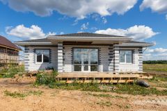 Продам одноэтажный благоустроенный каменный дом 87.5 кв.м в селе Перевалово в 15 километрах от Тюмени. Если вы готовы приобрести дом в черновой отделкой, без подключенного электричество от застрощика, то стоимость за наличный расчет составит 2 222 000 рублей, в ипотеку 2 555 000 рублей. Дом в улучшенной черновой отделке - стоимость 3 600 000 рублей. Электричество подключено. ЛОКАЦИЯ. Московский тракт. Земли населенных пунктов для ИЖС. Соседи живут круглый год. Дороги зимой чистят. Ходит школьный автобус. Есть остановки общественного транспорта. В селе работает детский сад, общеобразовательная школа, Никольская церковь, торговые центры, почта, ФАП. УЧАСТОК. Ровный, высокий, площадь участка 5 соток. Участок угловой, можно сделать удобный заезд с 2 сторон. Расположен на 5 улице от трассы. На участке тихо, шум от дороги не слышен. ДОМ. Фундамент: ленточный, с залитой монолитной плитой. Наружные стены: блок поревит, обложенный полуторным силикатным кирпичом. Крыша: четырехскатная, утепленная, перекрытия деревянные, покрытая ондулином. Внутренняя отделка: окна тройной стеклопакет, пол черновая стяжка. Водоснабжение автономное: своя скважина, установлен насос, фильтры, расширительный мембранный бачок, манометр, реле давления. Водоотведение: автономное, индивидуальный септик из бетонных колец в количестве 3 штук, скрепленных между собой монтажной пеной, проведены канализационные выводы. Отопление: индивидуальный электрокотел, монтированный водяной теплый пол, расширительный бачок, коллектор для теплого пола, установлены 2 циркуляционных насоса. Газ проходит по улице. не подключен. Планировочное решение: кухня-гостиная 22.5 кв.м , две изолированные комнаты площадью 17 и 25 кв.м, большой совмещенный санузел. Рассмотрим различные варианты расчёта, поможем с получением ипотеки. Звоните! Организуем показ. МЫ ГАРАНТИРУЕМ ФИНАНСОВУЮ БЕЗОПАСНОСТЬ ДЛЯ НАШИХ КЛИЕНТОВ. Код пользователя: 115355 Номер в базе: 9805382
