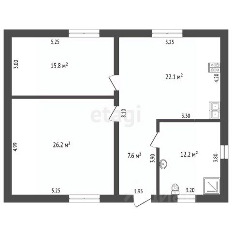 Продуманная планировка: кухня-гостиная 22 м кв., две изолированные комнаты 16 и 26 м кв., большой санузел 12.2 м кв.. При этом несущая стена одна - разделяющая коридор и комнаты. Можно планировать под себя, как пожелаете.