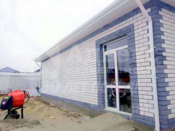 Дом построен из газоблоков типа "поревит", перегородки также из газоблоков, наружная штукатурка "короед". Фундамент - монолитная плита 300 мм.