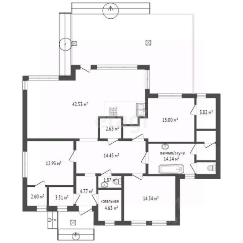 проживания. По дому разведено отопление от эл. котла , при желании можно подвести газ, газовый стояк рядом с участком. Водоснабжение центральное, также разведено по