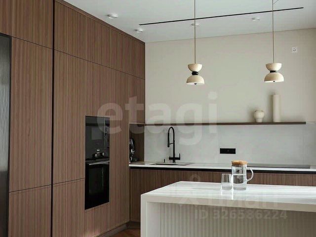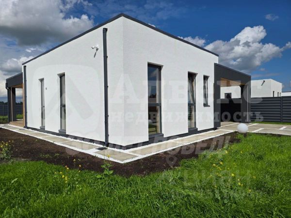 На первом этаже располагается гостевая зона 37.6 кв.м. с камином, кухня-столовая 19.4 кв.м., шикарный санузел 11.4 кв.м. с джакузи, теплый гараж с автоматическими воротами; Банный комплекс с бассейном 3х5 метров, сауной, душевой комнатой и комнатой отдыха!