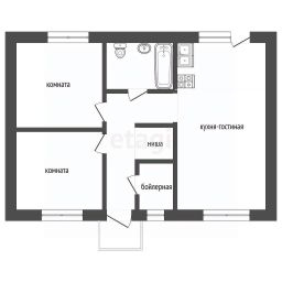 На первом этаже: просторная гостиная с потолками 5,6 метров и эркером. Кухня площадью 16 кв.м, спальня 14 кв.м, санузел, котельная с отдельным выходом.